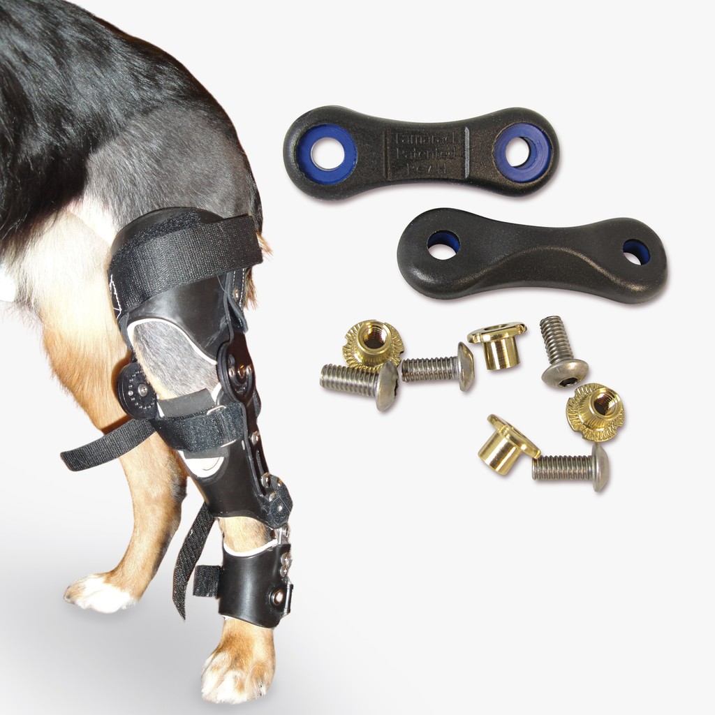 The Tamarack Flexure Joint is a durable and waterproof thermoformable ankle joint (“hinge”) used in human orthotic braces since 1995. With the emergence of animal bracing options, Tamarack Flexure Joints are preferred in many animal applications due to their ease of fabrication and lasting durability. Additionally, since Fido is a free spirit who loves jumping in the water, Tamarack Flexure Joints are preferred for their ability to withstand the user’s affinity for rain, lakes/rivers, and snowbanks without harming the effectiveness of the joints.